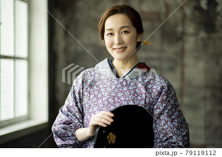 着物を着た和菓子屋さんの女性 手描きベクターイラスト