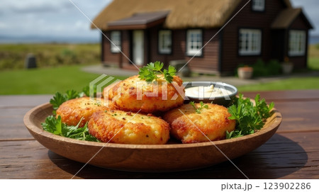 Taste of Iceland with Fiskibollur Fried Fish Cakes Served Outdoors
