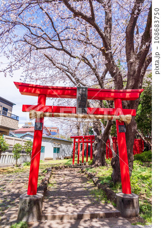 (静岡県長泉町)桜満開の割狐塚稲荷神社・赤鳥居