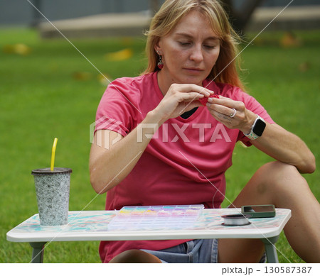 Young Business Woman Digital Nomad Working Outdoors with Laptop and Documents in a Park Setting