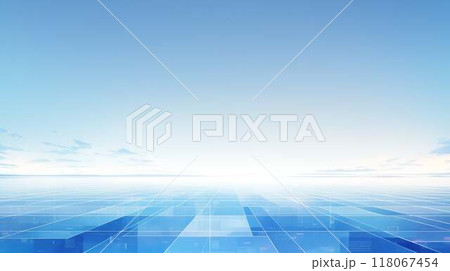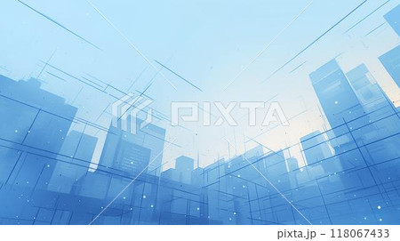 キラキラした青空とビルの立ち並ぶ街のイラスト背景素材