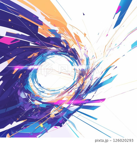 カラフルな光が渦巻くエネルギッシュな抽象テクノロジーアート