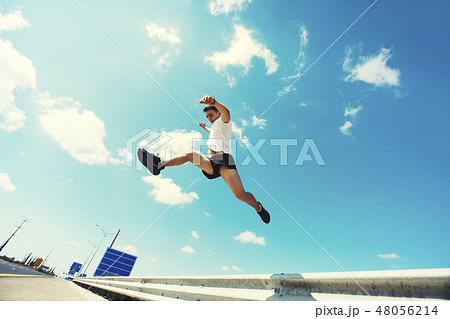 Young man jumping - fitness, sport