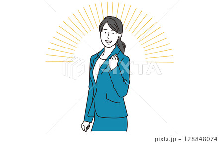 笑顔でガッツポーズをとるビジネスパーソンの女性イラスト
