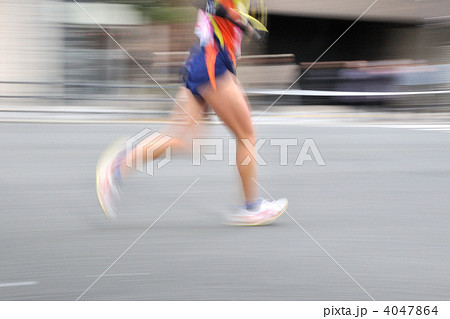 マラソン選手の足の運び 力走するマラソン選手