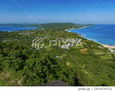 2つの海が見える丘 側の空撮 - 奄美大島 龍郷