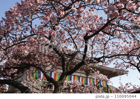 西新井大師・總持寺の大本堂と寒桜(東京都足立区)