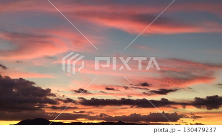 色鮮やかなピンク色の夕焼け