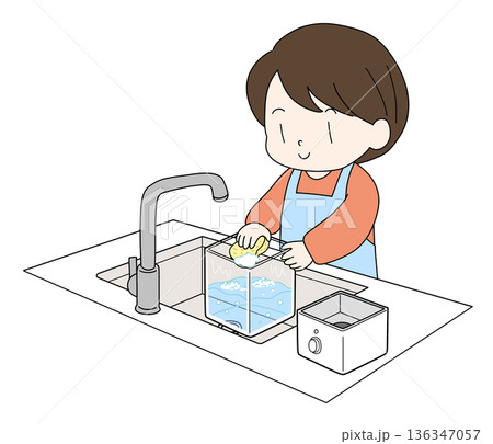加湿器を洗う女性のイラスト