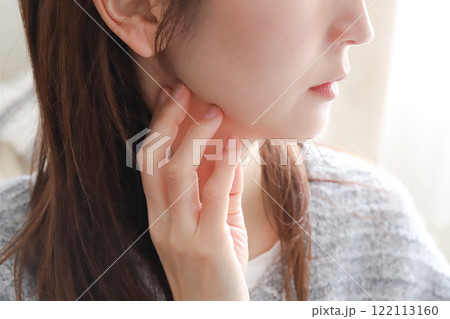 歯槽膿漏、歯周病で腫れた歯茎と健康な歯の笑顔の女性