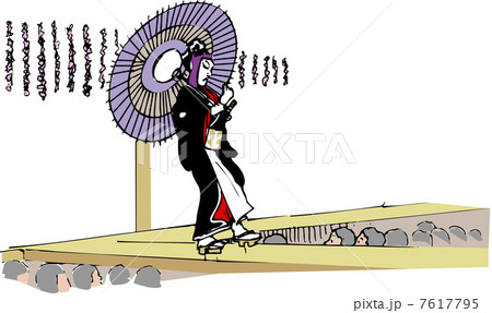 見栄を切る歌舞伎の花形演目 日本の芸能舞台の役者たち インバウンド向けイラスト素材
