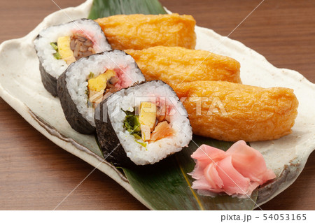 助六寿司(稲荷寿司・海苔巻き)白背景