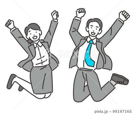 ジャンプするビジネスパーソンの男女のベクターイラスト素材/就職活動/リクルート/採用/うれしい