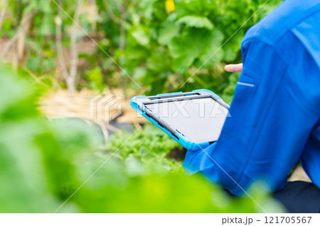 畑でタブレットを見る農家 アグリテック スマート農業