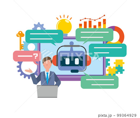 Robotic process automation innovation technology. People develop chatbot with electronic tools, software. Artificial Intelligence in marketing. FAQ. Chat bot virtual assistant. Customer support
