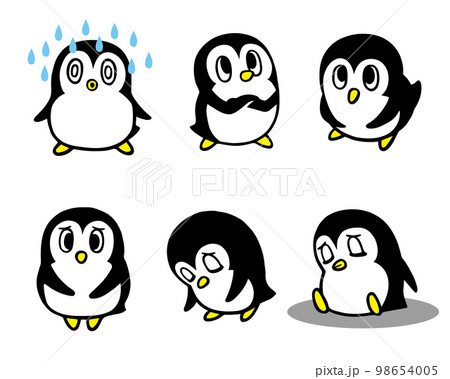 かわいいペンギンキャラクターセット6 (あせる、考える、困る、悩む 他)