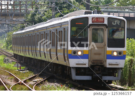千葉県長浦駅周辺の線路で撮った内房線を走る京葉線