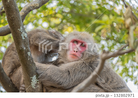 木の上で毛繕いするニホンザル 嵐山モンキーパークいわたやま