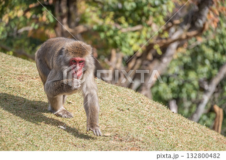 おやつを食べるニホンザル 嵐山モンキーパークいわたやま