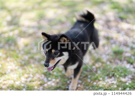 しだれ桜背景に柴犬 桜と柴犬 かわいい柴犬 柴犬茜