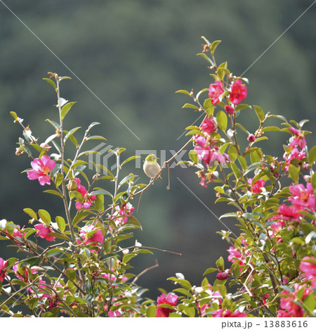 サザンカとメジロ
