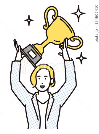 シンプル イラスト トロフィーを持つビジネスパーソンの女性 人物