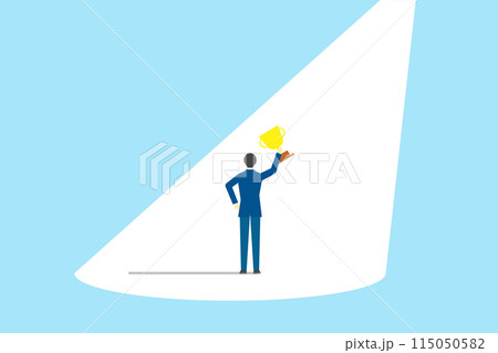 トロフィーを掲げるビジネスマン