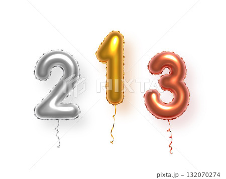 Golden, silver and bronze balloon-shaped awards. Winners rewards isolated on transparent background. Prizes for first, second and third places. Abstract vector illustrations set