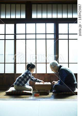 将棋をする祖父と孫