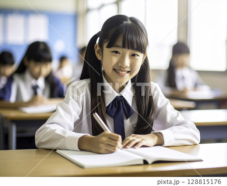 教室で学習に取り組む小学生の女の子・穏やかな笑顔の学びの時間