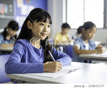 教室で学習に取り組む小学生の女の子・穏やかな笑顔の学びの時間