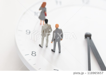 時計の文字盤とビジネススーツの男性人形 労働時間、キャリアのイメージ