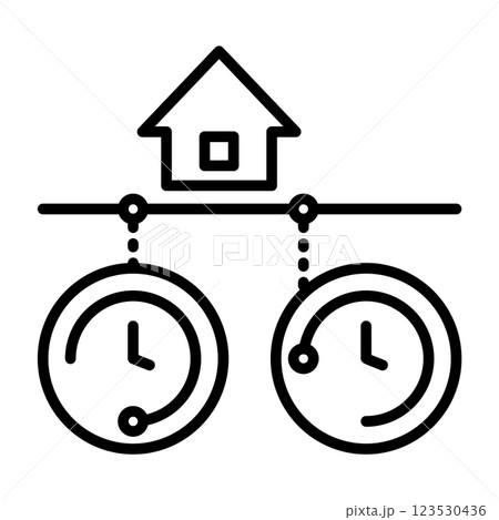 勤務間インターバルのイメージアイコン。労働時間と次の勤務時間の間には自宅があります。