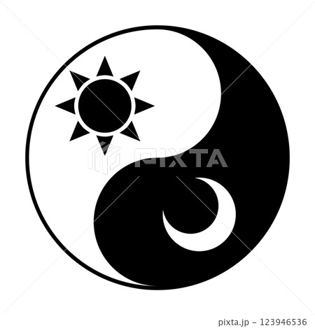 太陽と月がある陰陽太極図のシンプルなイラスト
