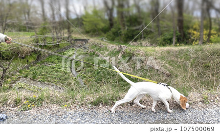匂いをかぎながらリードを引っ張る犬