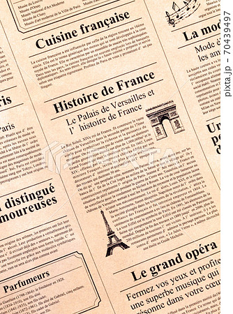 色褪せたフランス語の新聞、壁紙、背景素材、セピアカラー