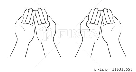 差し出す両手の線画イラスト 重なりあり 白背景あり・なし