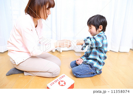 怪我をした子供と母親