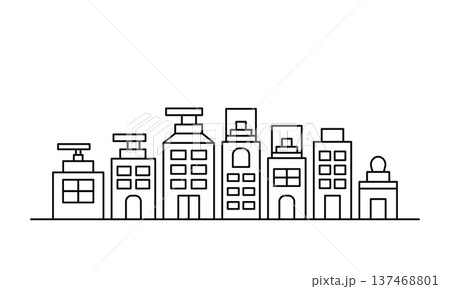 ボトル容器やスプレー缶で表現した街並み線画イラスト