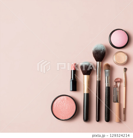 Elegant Makeup and Skincare Accessories on Soft Background with Flowers