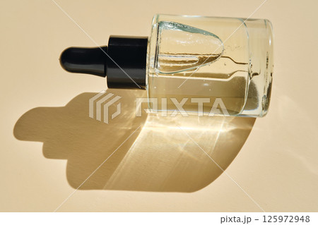 Cosmetic Bottle and Makeup Brush on Soft Toned Background Skincare and Beauty Concept