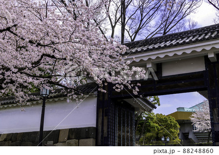 江戸城 田安門と満開の桜並木 東京都千代田区