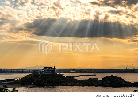 「青森県」蕪島の夕景 八戸市