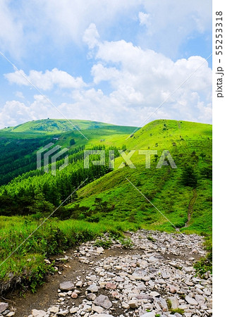 車山高原の風景 (夏) : 北の耳から南の耳・車山を望む