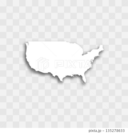 United States of America high detailed vector representation of country silhouette. White color on transparent background with dropped shadow. For educational, decorative, or informational use.