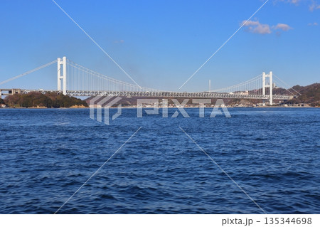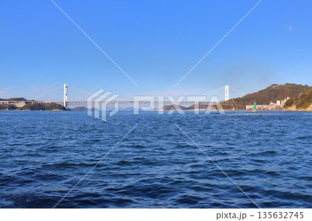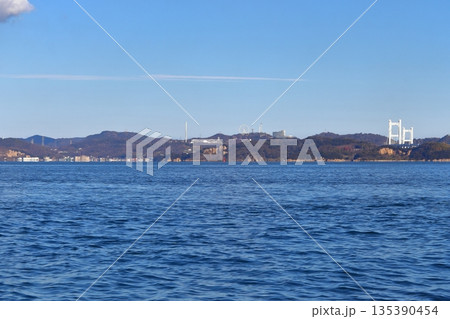 櫃石島沖合から眺めた瀬戸大橋と鷲羽山