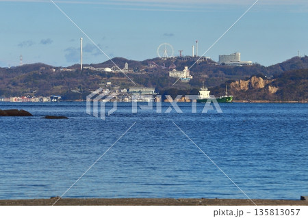 水島灘沖合から眺めた鷲羽山(岡山県倉敷市)
