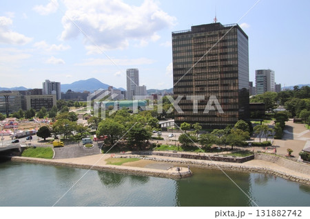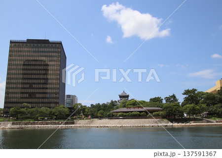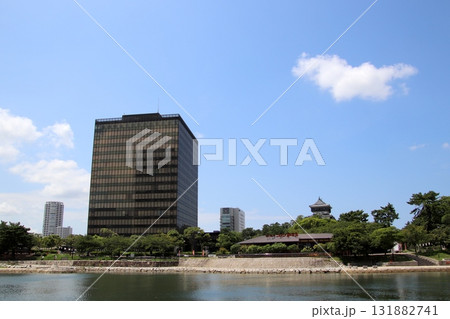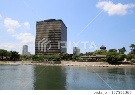 北九州市の小倉市街地にある小倉城の堀と街の風景