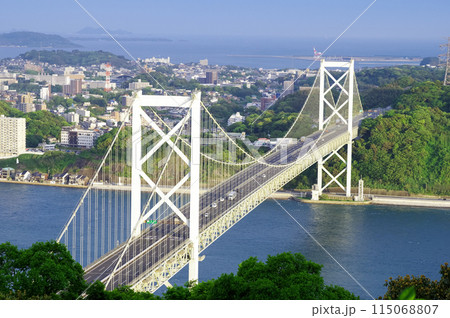 福岡県北九州市門司区の関門橋と夕陽
