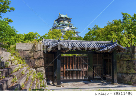 大阪城天守閣と北仕切門(初夏 新緑の季節)
